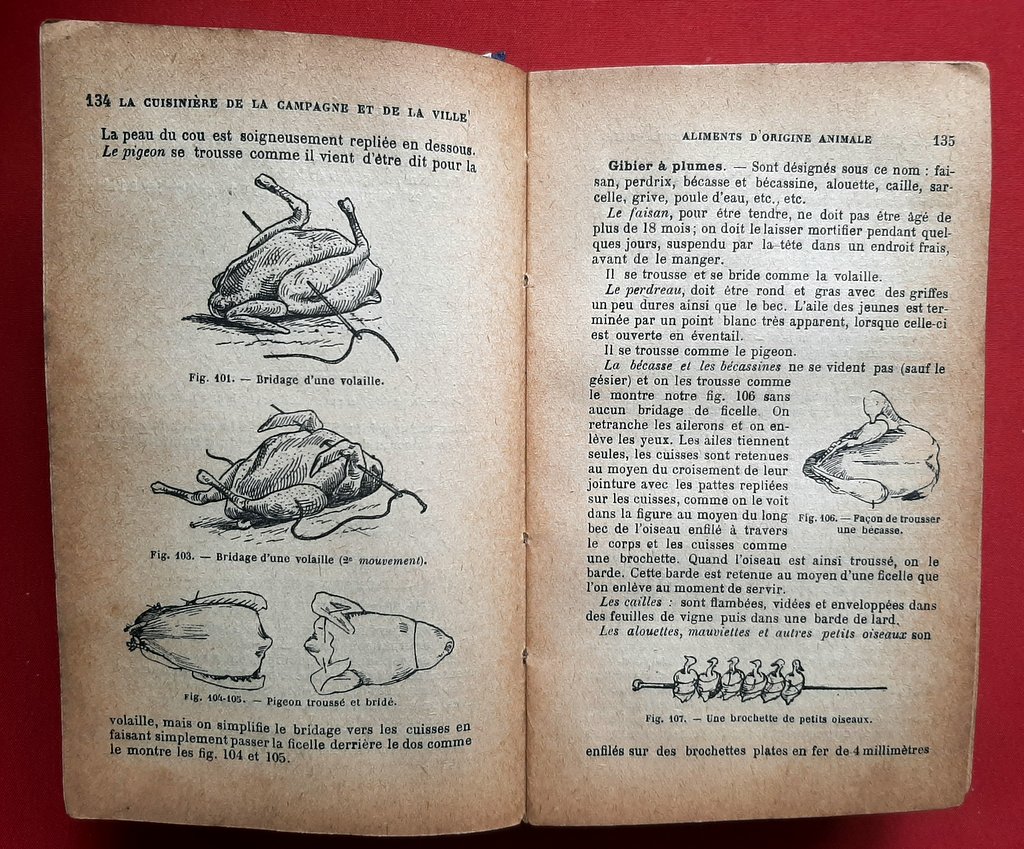 Un « Monument » de la cuisine française! Notre exemplaire est l’édition spéciale de la 100e édition, l’édition originale datant de 1818. L’ensemble de cet ouvrage a été remanié de fond en comble par madame Henriette Babet-Charton. Pour une meilleure compréhension 215 dessins en noir y figure tout le long de ce livre.