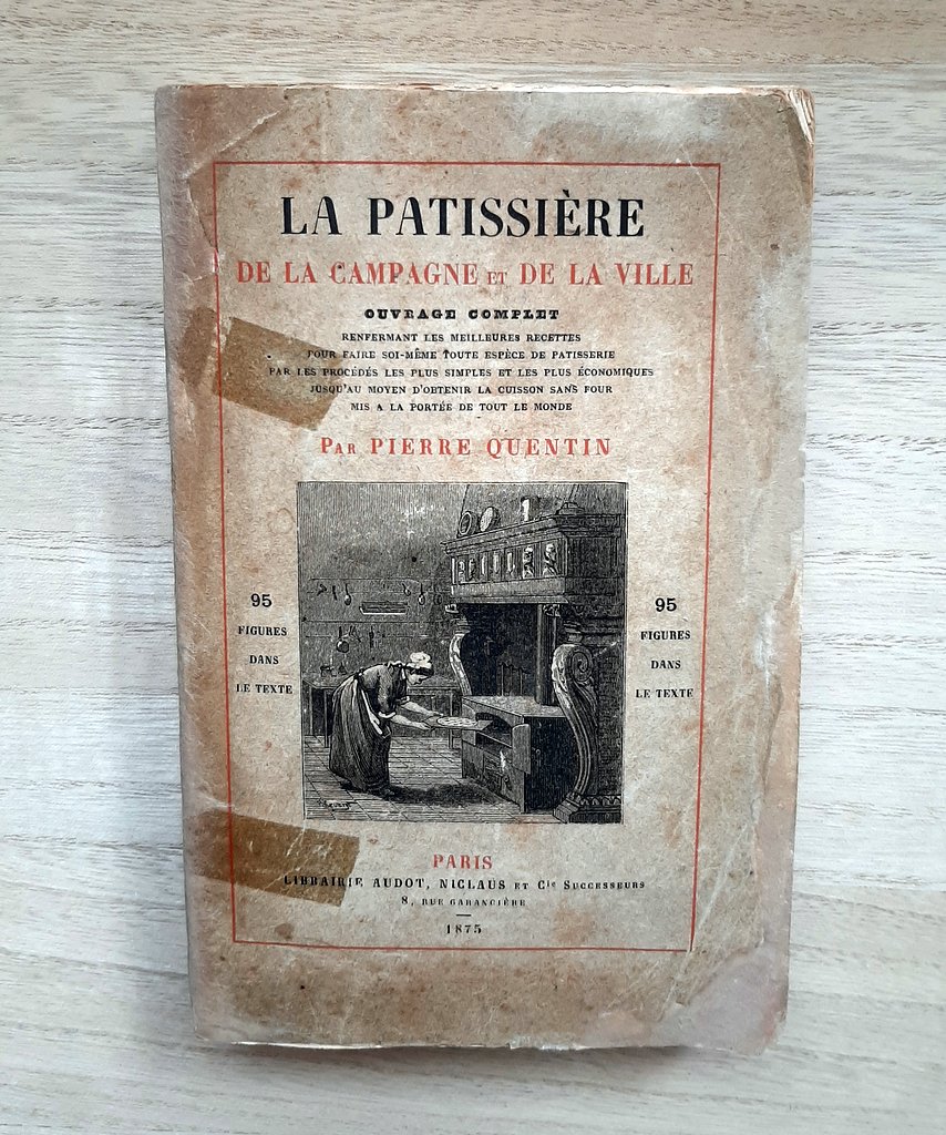 QUENTIN, Pierre – “La pâtisserie de la campagne et de la ville, ouvrage complet renfermant les meilleures recettes pour faire soi-même toute espèce de pâtisserie par les procédés les plus simples et les plus économiques jusqu’au moyen d’obtenir la cuisson sans four mis à la portée de tout le monde.”